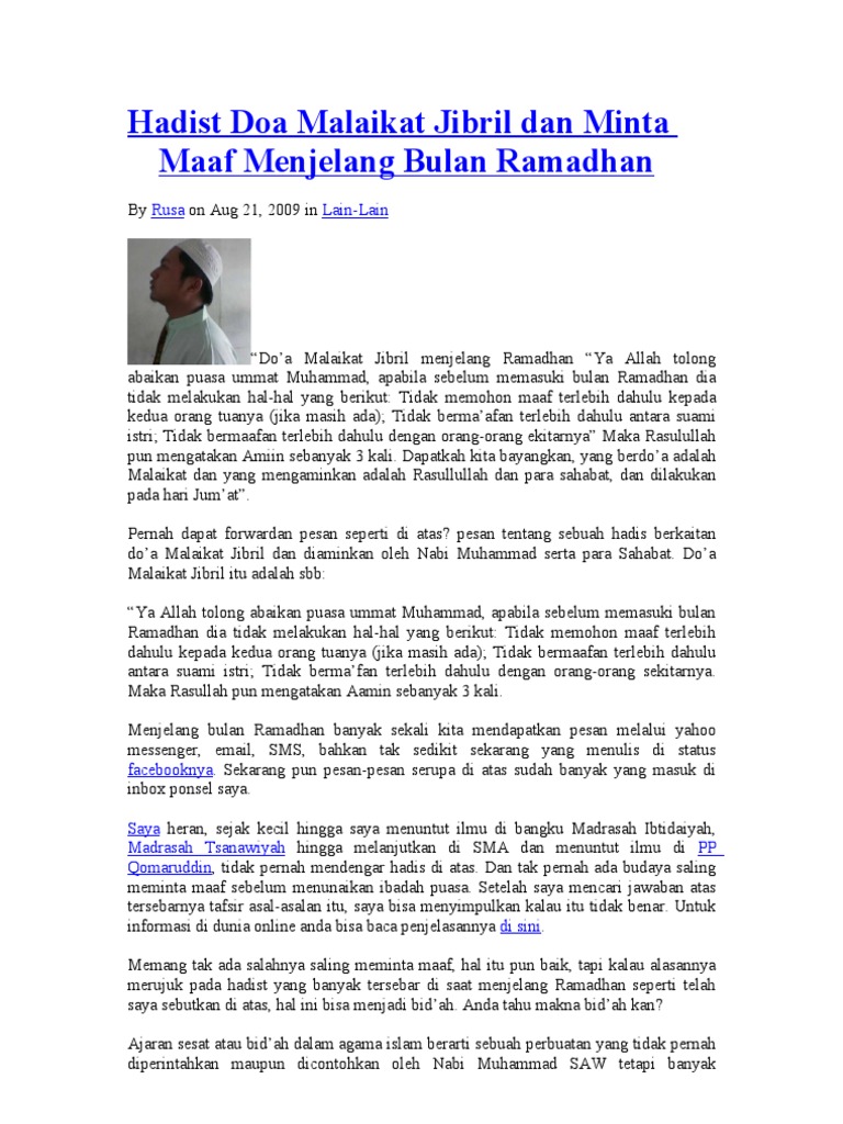 Hadist Doa Malaikat Jibril Dan Minta Maaf Menjelang Bulan Ramadhan Pdf